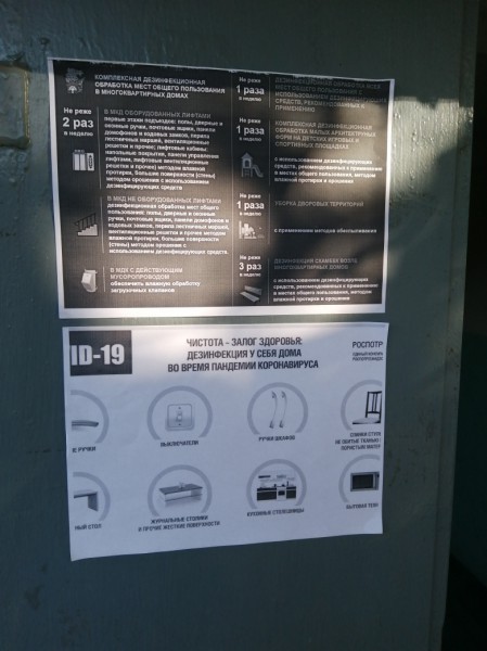 На подъездах многоквартирных домов размещена информация о выполнении дезинфекционной обработки мест общего пользования (почтовые ящики, ручки дверей, лестничные пролеты и т.д.).