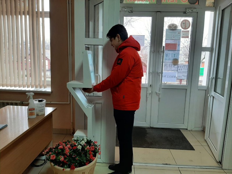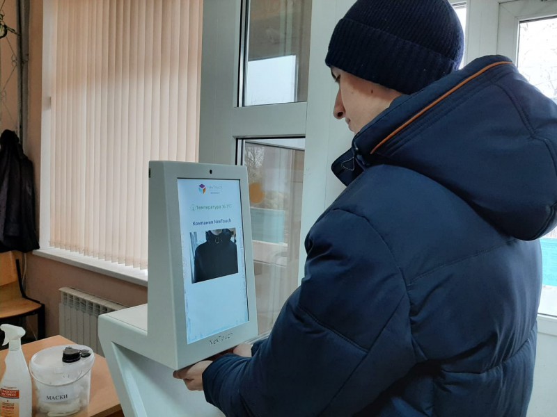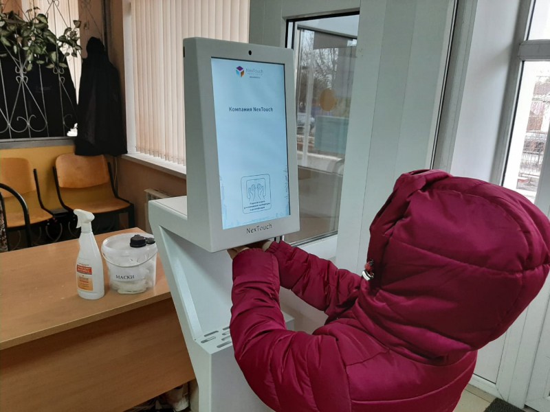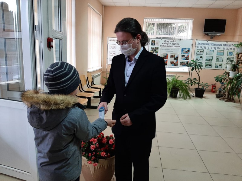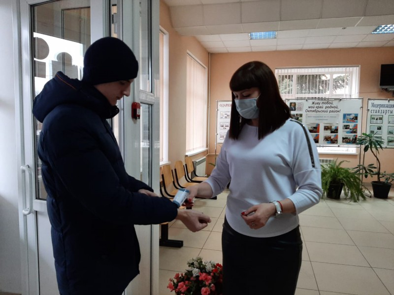 В школах Октябрьского района продолжаются специальные противоэпидемические мероприятия, установлены аппаратно-программные комплексы для дезинфекции рук с функцией измерения температуры тела.