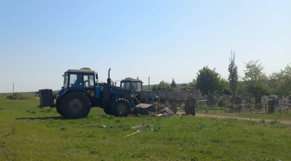 Во всех поселениях Октябрьского района перед Пасхой активно продолжается уборка кладбищ.