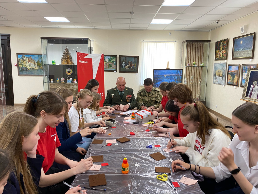 В завершении встречи Первые вместе с гостями приняли участие в мастер-классе и изготовили талисман-шеврон «Чебурашку» для военнослужащих, который стал одним из символов специальной военной операции и счастливым талисманом наших военных, тем самым передали им тепло своих сердец, любовь и благодарность за мирное небо над головой.
