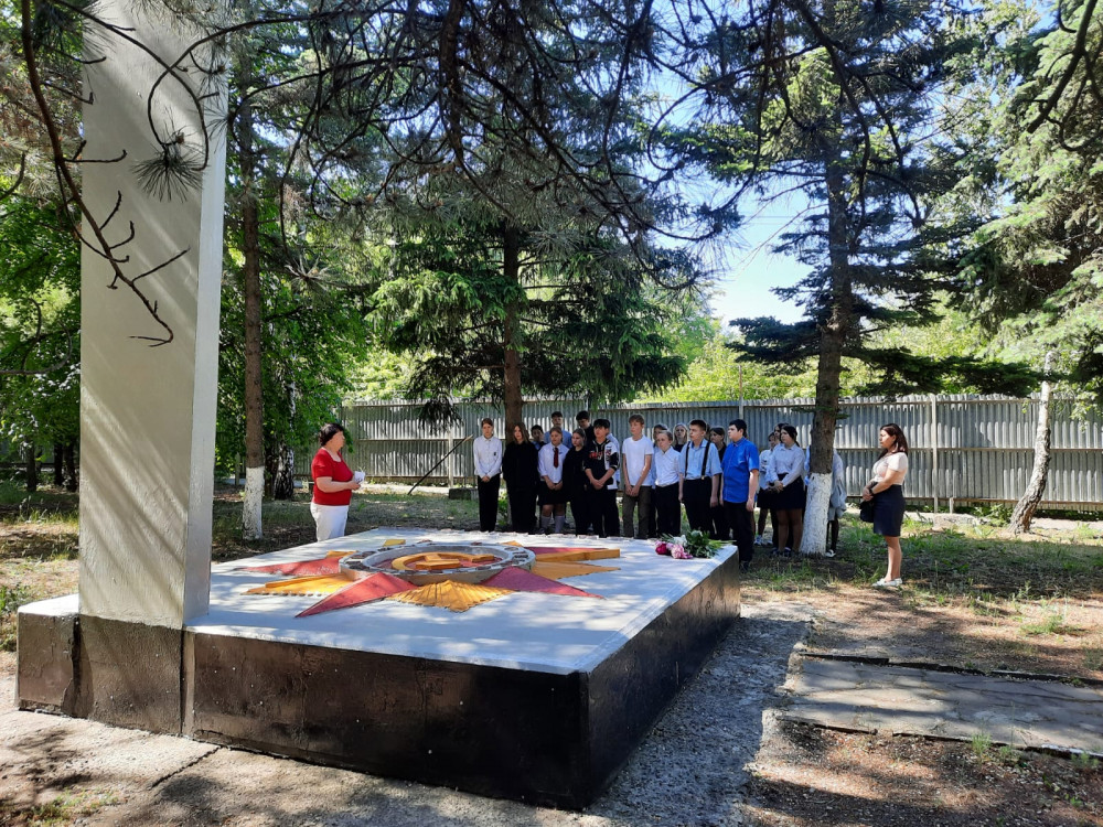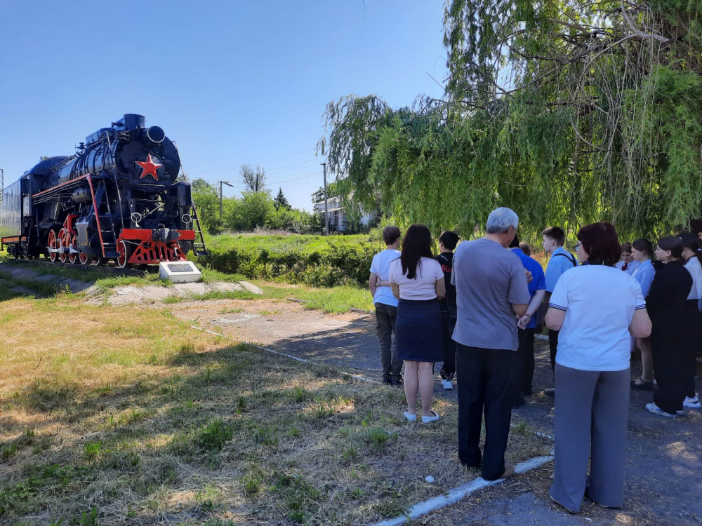 В самом парке Локомотивного депо, заложенном в 1962-1963г - у Стелы, на которой высечены имена 52 работников паровозного депо Каменоломни, павших за независимость нашей Родины в годы ВОВ 1941-1945гг. ребята возложили цветы.