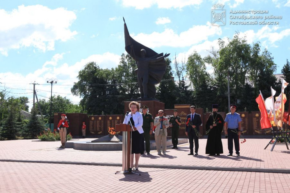 Сегодня накануне Дня памяти и скорби, посвященного дню начала Великой Отечественной войны, в Октябрьском районе на площади 50-летия Победы поселка Каменоломни, прошел митинг.