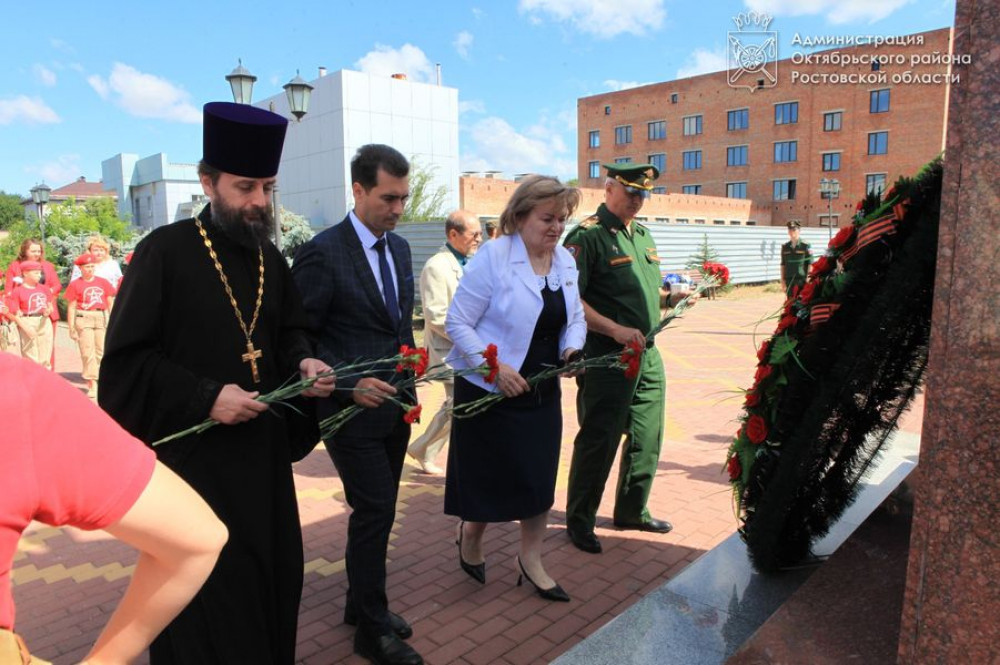 В митинге приняли участие глава Администрации Октябрьского района Людмила Овчиева, военный комиссар по Октябрьскому району и городу Шахты Иван Вансович, председатель районного Совета ветеранов Юрий Точеный, председатель первичной общественной организации ветеранов-участников специальной военной операции Вячеслав Черный, благочинный приходов Нижнедонского округа протоиерей Сергий Яценко, жители Октябрьского района.
