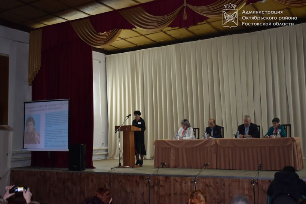Глава Администрации Октябрьского района Людмила Овчиева приняла участие в заседании. Также в президиум вошли председатель районного совета ветеранов Юрий Точеный, глава Администрации Мокрологского сельского поселения Григорий Кочин, председатель первичной ветеранской организации хутора Маркин Юлия Прошунина. На заседании присутствовали главы администраций поселений, специалисты по молодежной политике, руководители отделов администрации, которые могли ответить на вопросы ветеранов по разным темам.