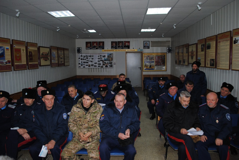 Инструктаж проводил заместитель начальника отдела полиции № 3 МУ МВД РФ «Новочеркасское» Александр Рыковский, заведующий сектором по казачеству и связям с общественными организациями Администрации Октябрьского района Александр Голощапов, командир казачьей пешей дружины по Октябрьскому району Вячеслав Черный, врио командира конного взвода по Октябрьскому району Александр Басенков.