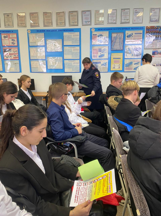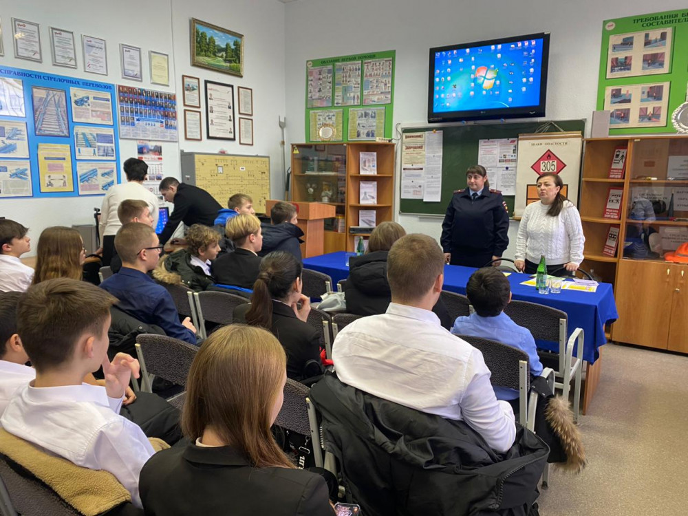 11 декабря 2024 год ученики гимназии № 20 поселке Каменоломни посетили с экскурсией станцию Каменоломни. Старший инспектор ОПДН ЛОП на ст. Шахтная майор полиции Ампилогова Т.А. и специалист по охране труда ст. Каменоломни Куделина Н.В. провели для ребят лекцию о правилах безопасности на объектах железнодорожного транспорта и ответственности за транспортные правонарушения. Школьникам были розданы соответствующие памятки и показан познавательный видеоролик.