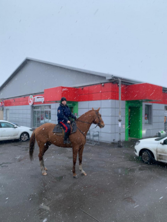 В Октябрьском районе конные дружинники по установленному графику проводят конное патрулирование. В ходе проверок они патрулируют улицы общего пользования, парк, территории около школы, детского сада и других социально значимых учреждений.