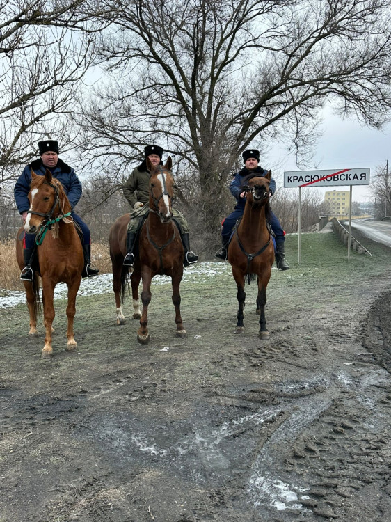 14 января конный патруль в составе 3 конных дружинников конного взвода казачьей дружины войскового казачьего общества «Всевеликое войско Донское» по Октябрьскому району под командованием старшего группы: дружинника конного взвода Журбина Виктора Сергеевича согласно маршрута обеспечили патрулирование в слободе Красюковская Октябрьского района.