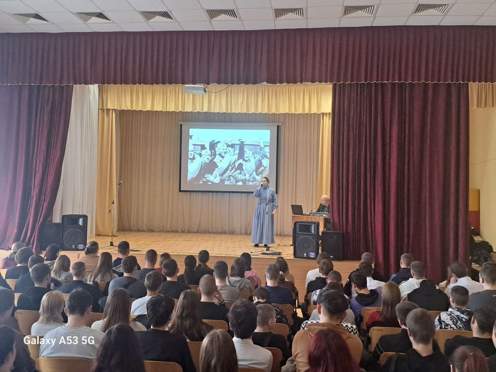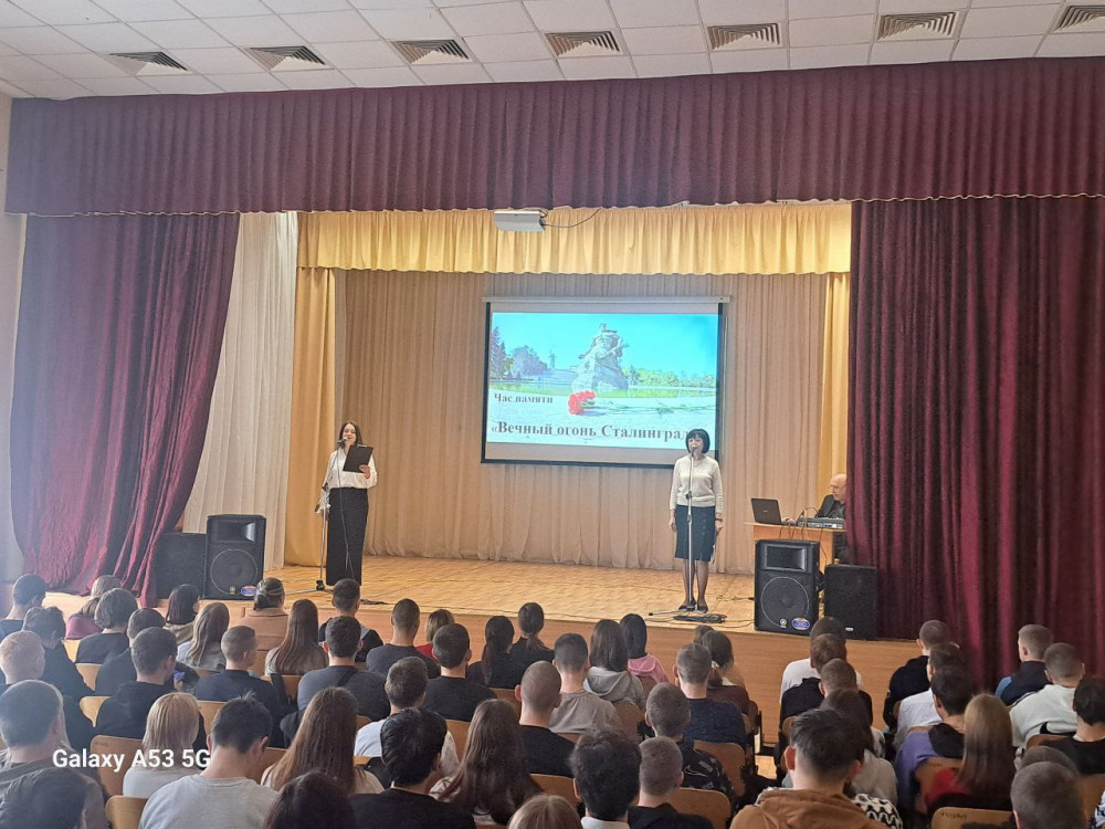 В честь памятной даты в рамках военно-патриотического клуба «Патриот» созданного при районном Дворце культуры специалистами МУ «Октябрьский РДК» совместно с сотрудниками МУК «Краеведческий музей» в малом зале РДК было проведено мероприятие «Сталинград – 200 дней мужества и стойкости» для студентов ГБПОУ РО «Октябрьский аграрно-технологический техникум».