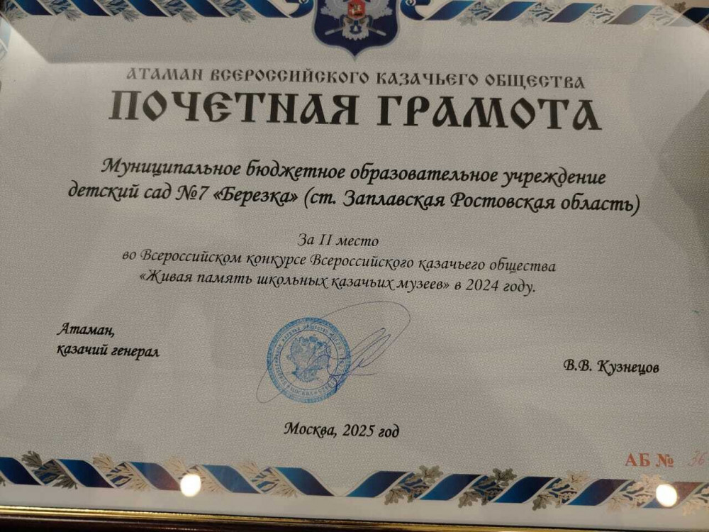 Эти учреждения заняли почётное второе место во Всероссийском конкурсе Всероссийского казачьего общества на тему «Живая память школьных казачьих музеев в 2024 году».