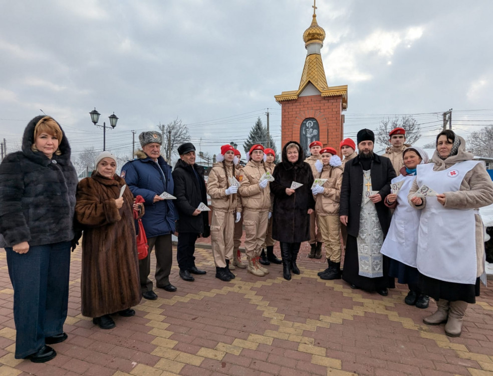 Участниками мероприятия также стали волонтеры группы «Добро», занимающиеся сбором гуманитарной помощи для участников специальной военной операции и участвующие в акции «Письмо солдату». Группа действует при храме Архистратига Михаила в поселке Каменоломни. После завершения митинга юнармейцы передали сестрам милосердия письма, которые будут отправлены бойцам с ближайшим гуманитарным грузом. В передаче писем также приняла участие глава Администрации Октябрьского района Людмила Овчиева. Глава поблагодарила сестер за важную работу с молодежью и нашими защитниками, которая особенно актуальна сегодня.