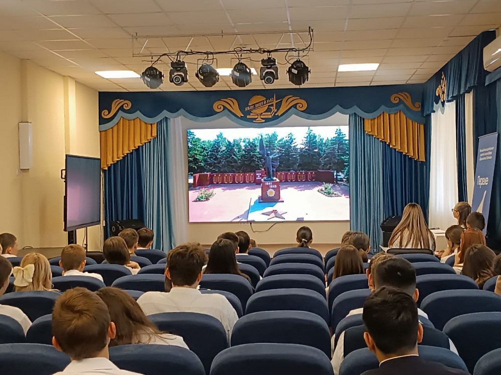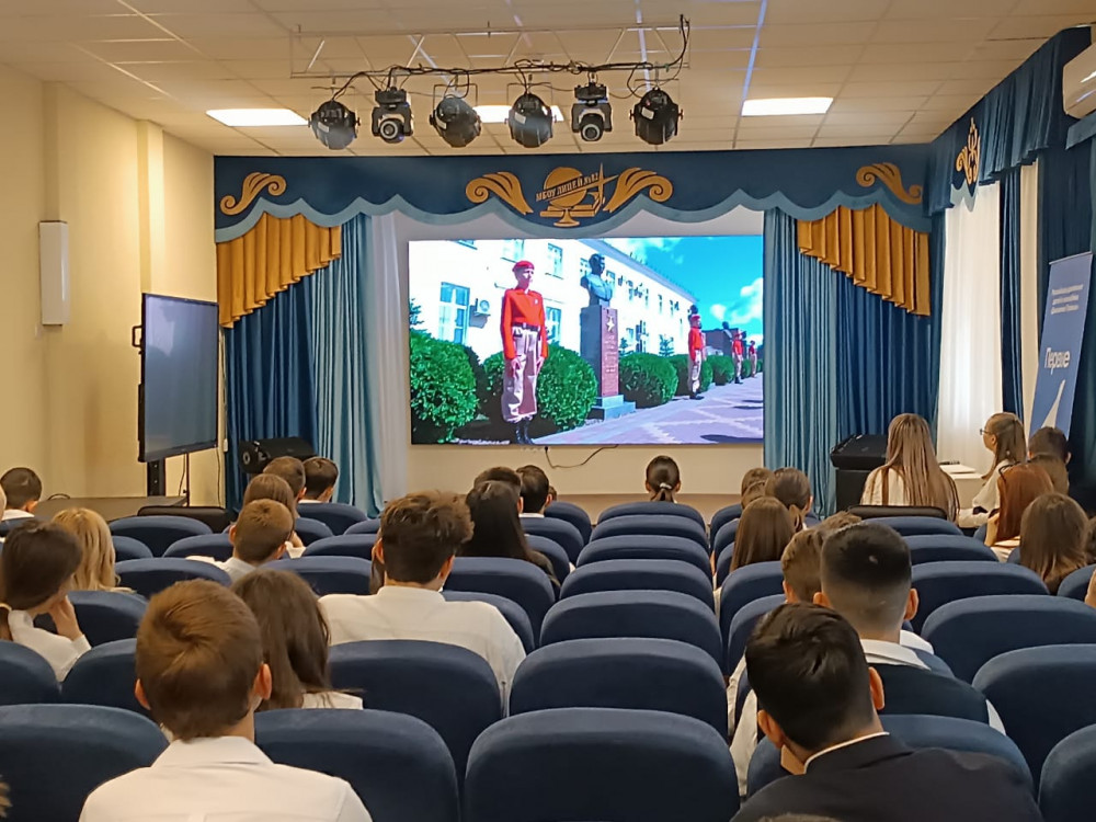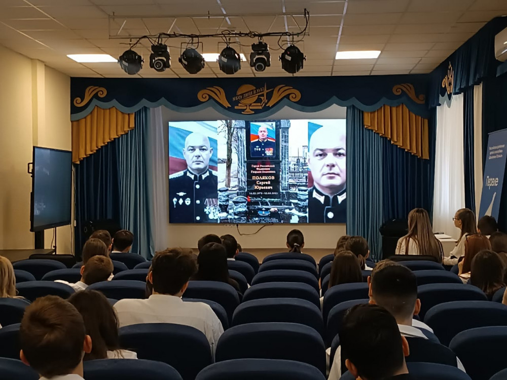 В ходе мероприятия учащиеся прослушали биографию и просмотрели документальный фильм «Памяти Героя России Сергея Полякова» телекомпании «Видеотон ТВ».