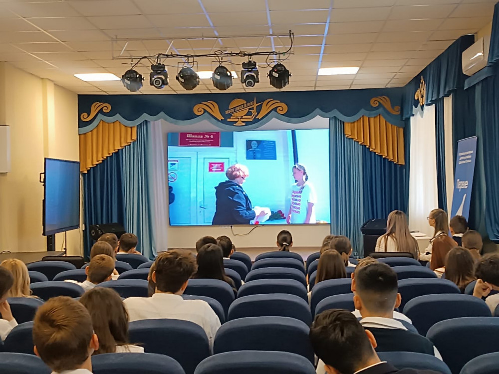 В ходе мероприятия учащиеся прослушали биографию и просмотрели документальный фильм «Памяти Героя России Сергея Полякова» телекомпании «Видеотон ТВ».