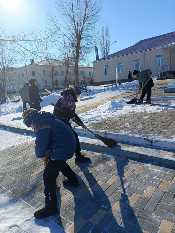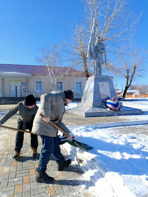 Школьники навели порядок возле памятника Неизвестному солдату. Ребята тщательно убрали территорию от снега, а также подмели.