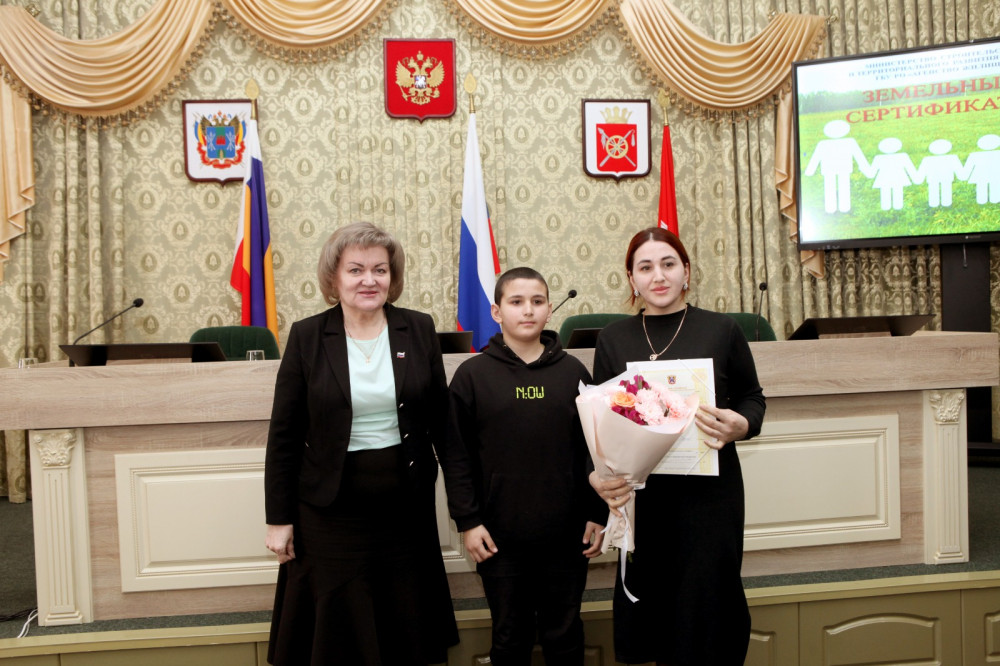 Сегодня, 28 февраля 2025 года, глава администрации Октябрьского района Людмила Овчиева вручила земельные сертификаты многодетным семьям района. В мероприятии также приняла участие начальник управления жилищных программ ГБУ РО "Агентство жилищных программ" Оксана Кисляк.