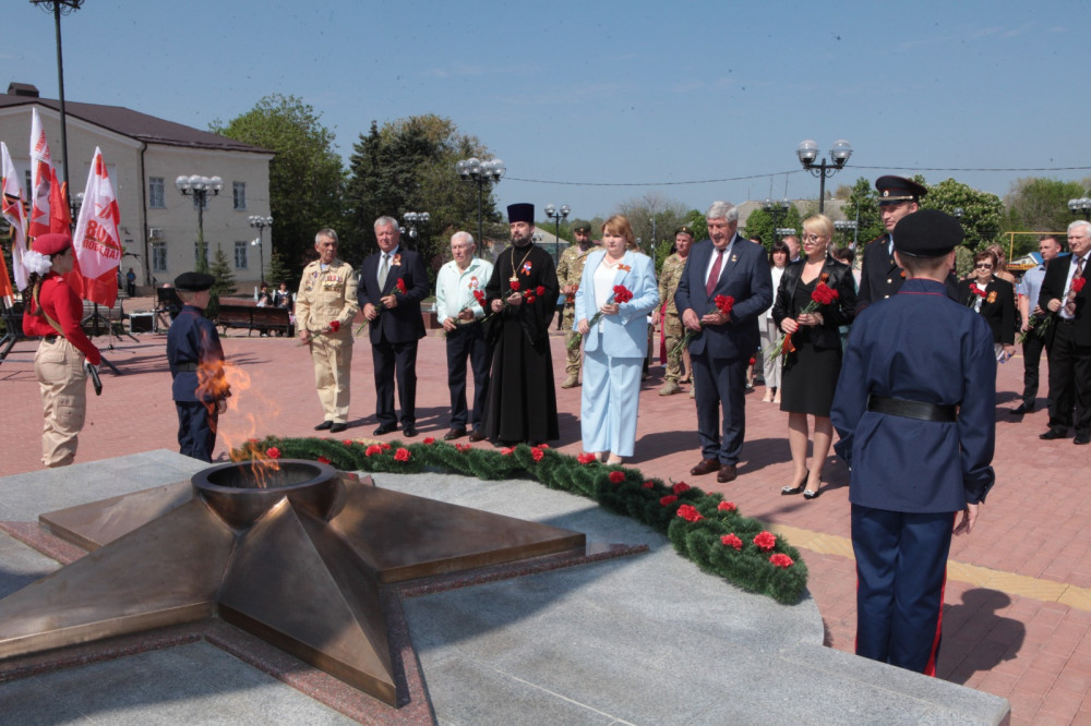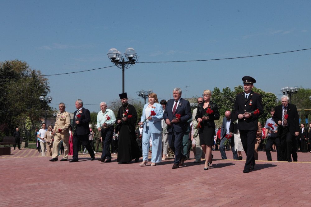 В знак общей печали о погибших во время войны жители возложили цветы к Вечному огню на площади 50-летия Победы, на Аллея Героев Советского Союза, России и Социалистического труда, к мемориалу «Аллея памяти».