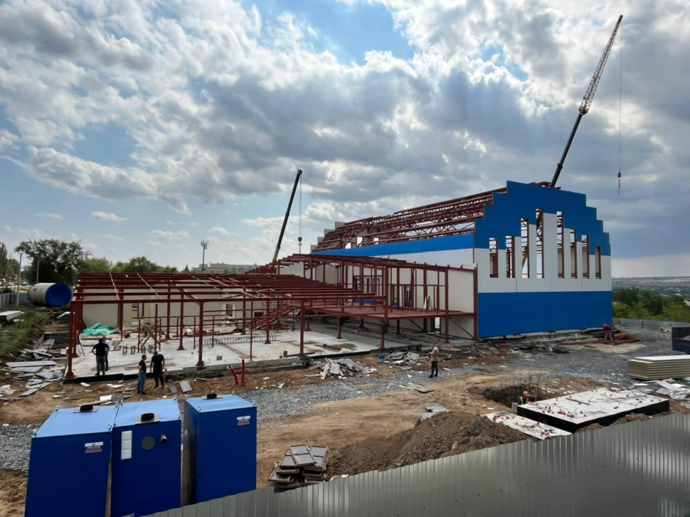 Строительство данного объекта ведется в рамках концессионного соглашения, заключенного между Администрацией Октябрьского района и ООО «Бассейны регионов 2». Проект предусматривает не только возведение, но и последующую эксплуатацию современного спортивного объекта. Министр по физической культуре и спорту Ростовской области посетил строящийся объект, где он обратил внимание на организационные вопросы, касающиеся хода работ. В частности, он поинтересовался, сколько человек в настоящее время трудится на данном строительном участке.