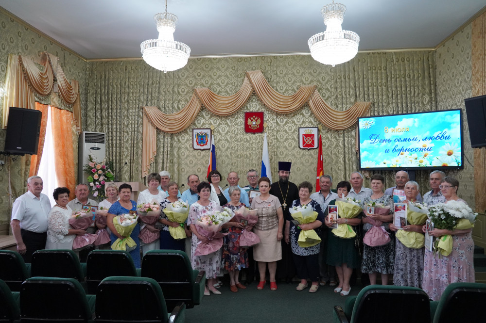 Также Татьяна Юшковская отметила важность заботы о семьях военнослужащих, участвующих в специальной военной операции. Традиционно в этот день в Октябрьском районе чествуют семейные пары, которые прожили вместе много лет и достойно воспитали детей и внуков. В этом году в зале присутствовали 14 замечательных семейных пар, представляющих как городское, так и сельские поселения района.