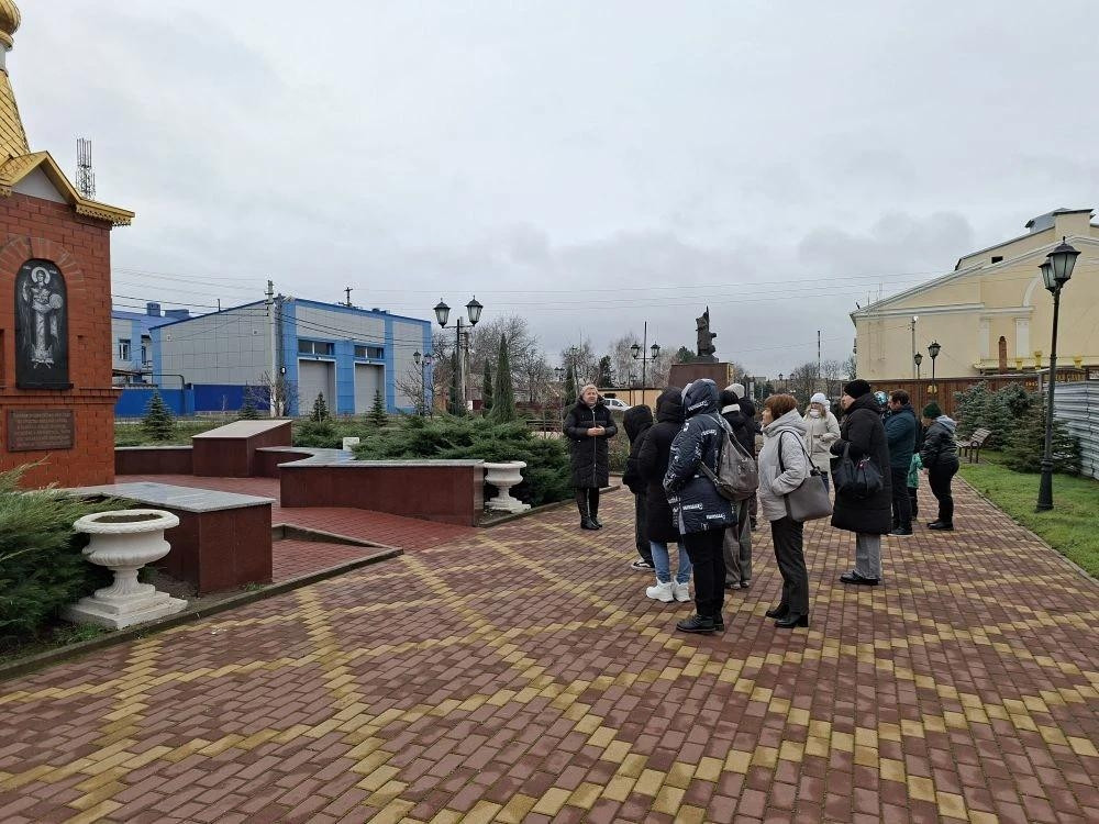 Программа визита началась с пешеходной экскурсии по поселку Каменоломни, которую провела директор музея Оксана Кислякова. Гости посетили значимые памятные места: площадь им. 50-летия Победы, Аллею Памяти и Часовню памяти и скорби, где почтили подвиг защитников Отечества.