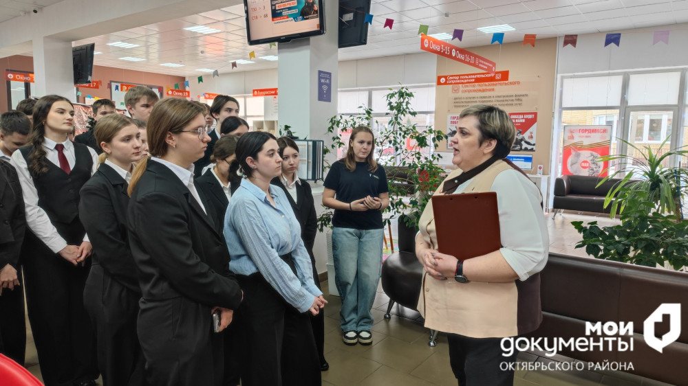 Учащиеся первичного отделения «Движения Первых» гимназии №20 имени С.С. Станчева посетили с экскурсией центральный офис МФЦ Октябрьского района. Мероприятие стало наглядным уроком по использованию современных цифровых сервисов и популяризации экологичного образа жизни.