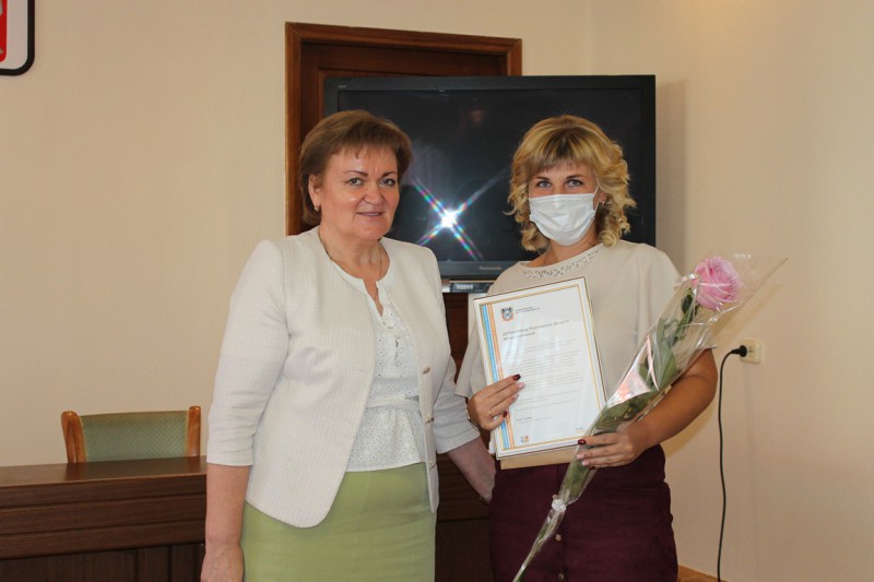 Благодарственным письмом Президента Российской Федерации В.В. Путина и памятной медалью «За бескорыстный вклад в организацию Общероссийской акции взаимопомощи #Мы вместе» награждена руководитель муниципального штаба волонтеров Октябрьского района М.С. Хмелёва.