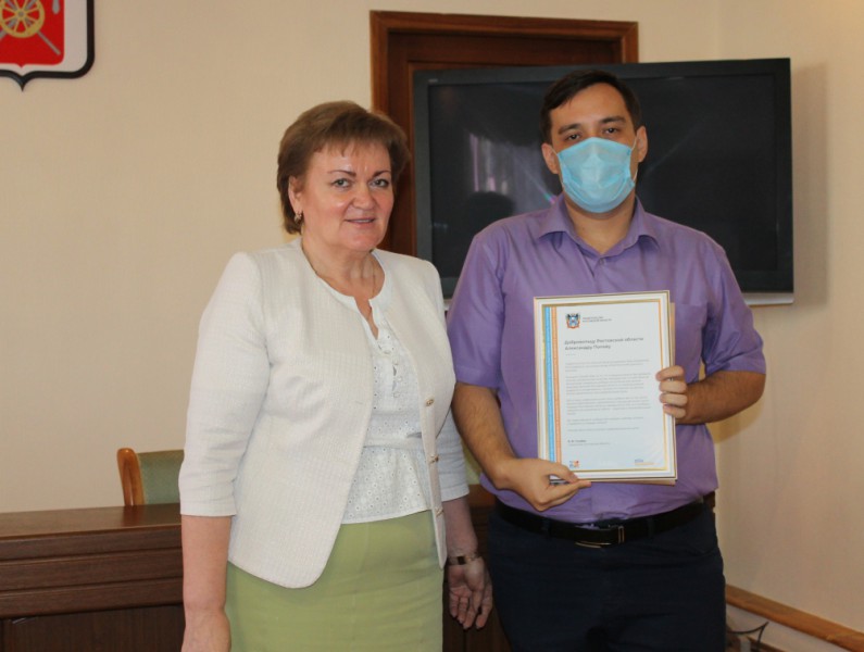 После этого Глава вручила Благодарственные письма от Правительства Ростовской области.