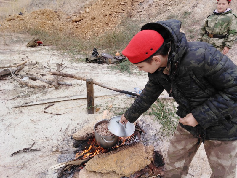 В завершении сдачи нормативов ребята приготовили на костре походно-полевую кашу, печенную картошку и чай. В теплой и дружной атмосфере с песнями у костра весело прошел перерыв. После свёртывания лагеря и уборки территории, отряды отправились в обратный путь.