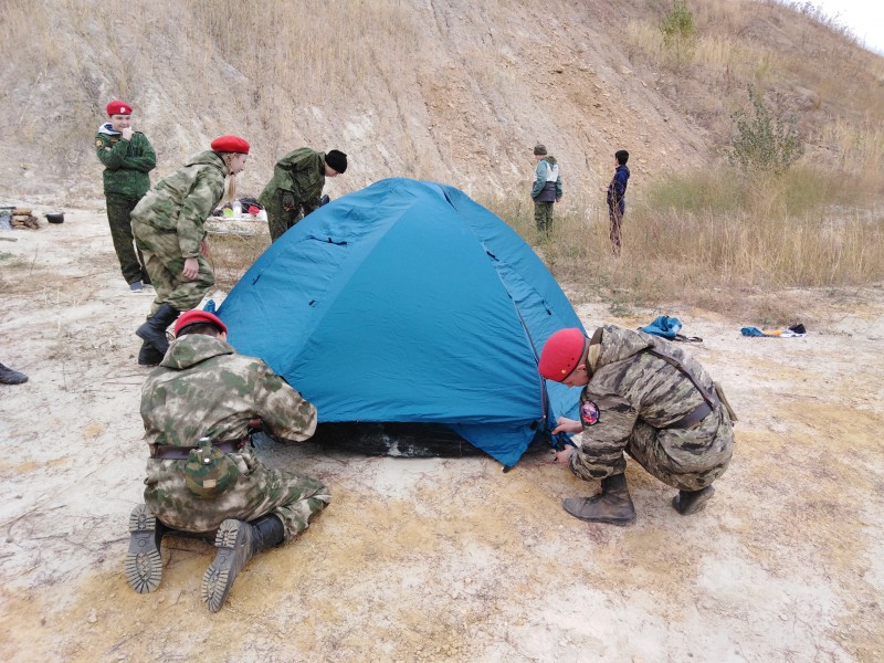 По пути следования юнармейцы выполняли испытания на проверку туристических навыков, а именно: разжигание костра, подъем и спуск по склону длиной до 30 м. с использованием альпинистского снаряжения, установка палатки, преодоление препятствий, кросс 200м, ориентирование на местности с помощью карты и компаса и т. д.