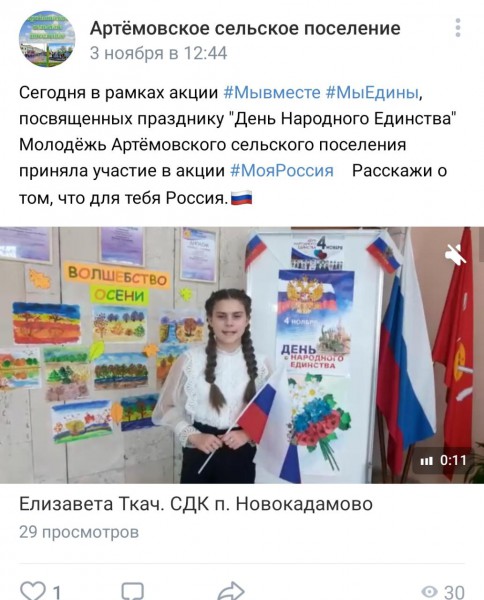 Это онлайн поздравления «С днем народного Единства!», акция «Рисуем вместе «Народы России», фотовыставки «Красота родного края», онлайн концерты, посвященные Дню народного Единства, акция «Единство навсегда» (съемка видеороликов), онлайн конкурсы стихов «Единство наша сила», онлайн выставки детских рисунков «Сильные-единые», онлайн-акции «Ночь искусств» и «Танцуют все», кулинарный флешмоб «Вкусно, национально», онлайн мастер классы по изготовлению открыток ко Дню народного единства.