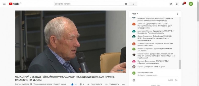 Ростовская область лидирует во Всероссийской акции «Моё детство – война», включенной в план основных мероприятий по проведению Года памяти и славы. В мероприятиях акции принимают участие почти 4000 волонтёров из 60 регионов России. В рамках продолжения работы по сохранению воспоминаний детей войны при поддержке правительства Ростовской области проводится областная акция «Поезд будущего-2020. Память. Наследие. Гордость».