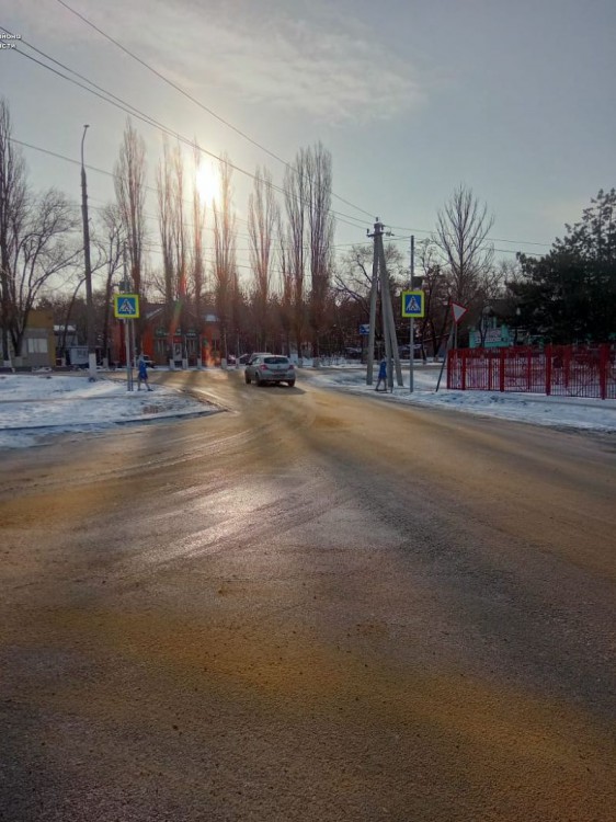 В населенных пунктах Октябрьского района с раннего утра провозятся работы по посыпке дорог и тротуаров от гололеда.