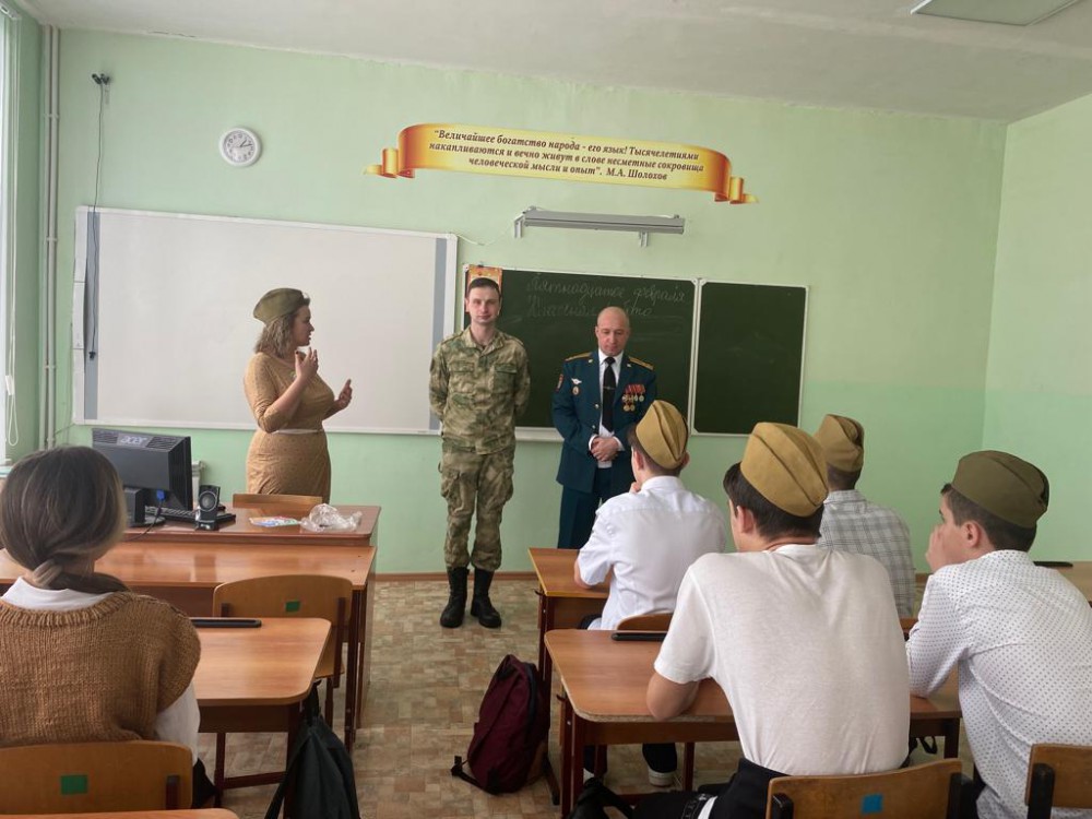 В МБОУ СОШ №62 слободы Красюковская военнослужащие Федеральной службы войск национальной гвардии Российской Федерации провели уроки мужества со школьниками.
