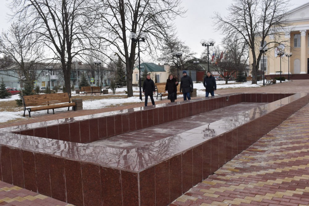 Министр жилищно-коммунального хозяйства Ростовской области Сергей Сизиков с рабочим визитом посетил Октябрьский район и осмотрел ход благоустройства площади им. 50-летия Победы в п. Каменоломни.