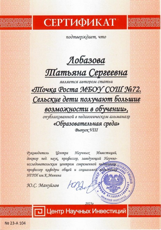 «Сельские дети получают большие возможности в обучении» - именно так называется статья, опубликованная в VIII выпуске педагогического альманаха «Образовательная среда».