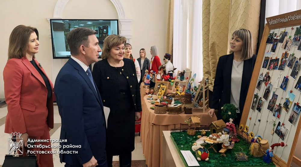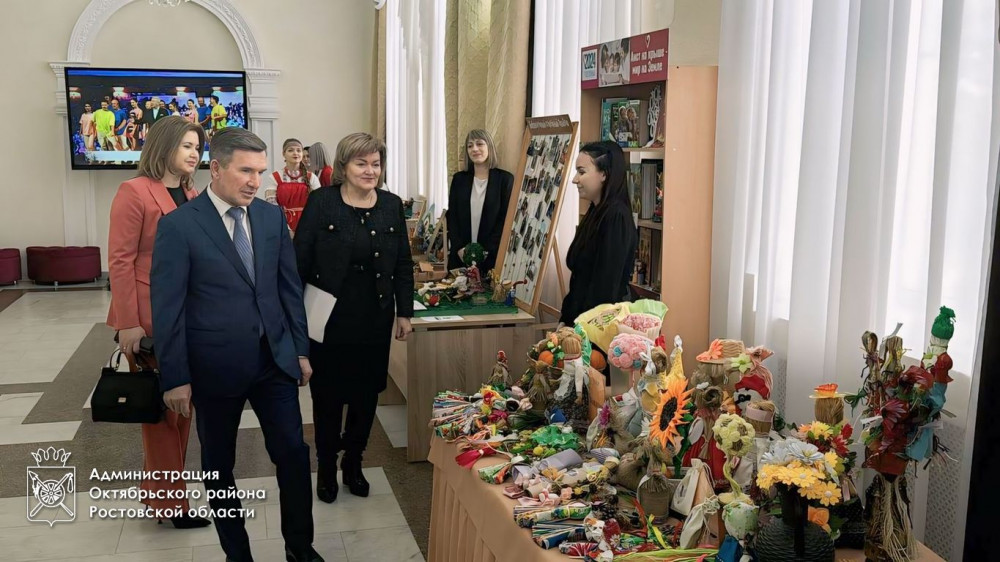 Первый заместитель Губернатора Ростовской области Игорь Гуськов, министр культуры Ростовской области Анна Дмитриева, глава Администрации Октябрьского района Людмила Овчиева посетили выставку мастеров декоративно-прикладного искусства.
