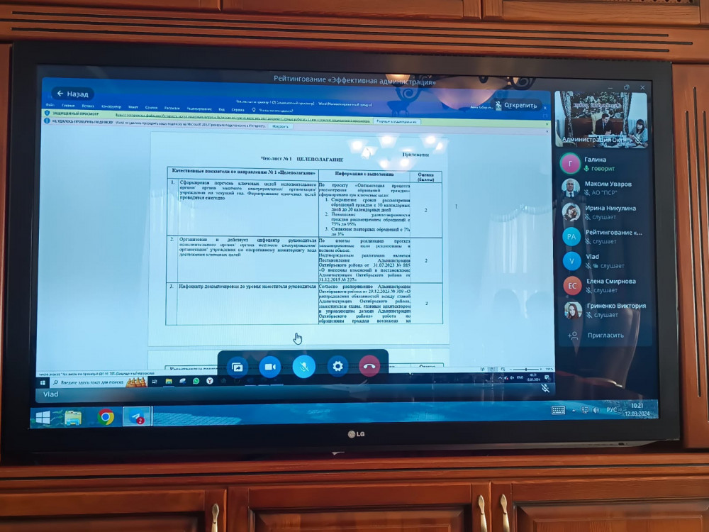 12 марта, в Администрации Октябрьского района, состоялось очередное заседание комиссии в режиме видеоконференцсвязи по проведению 3-го этапа рейтингирования в номинации «Эффективная муниципальная администрация».
