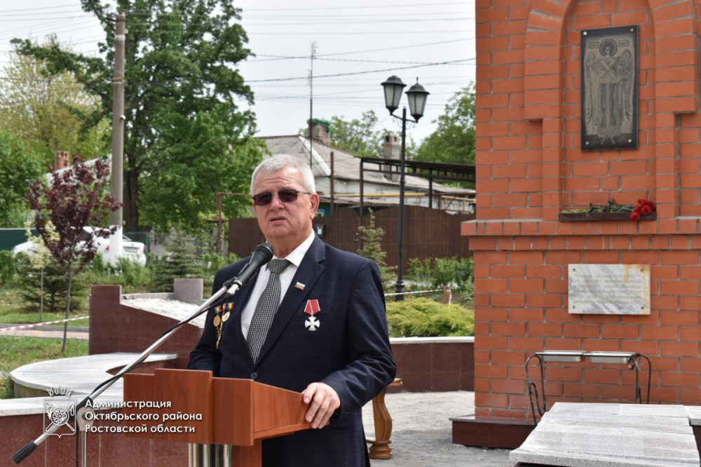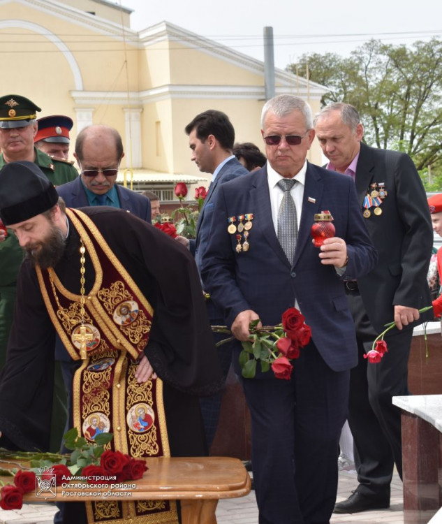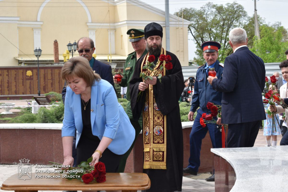 Также к собравшимся обратились заместитель Председателя Собрания депутатов Октябрьского района Наталья Злобина, военный комиссар г. Шахты и Октябрьского района Иван Вансович, председатель представительства РРОИ "Союз Чернобыль" в Октябрьском районе Михаил Харитонов. Протоиерей Сергий Яценко провел панихиду о погибших в катастрофе, после чего участники митинга почтили память погибших минутой молчания и возложили цветы к мемориалу погибших героев.