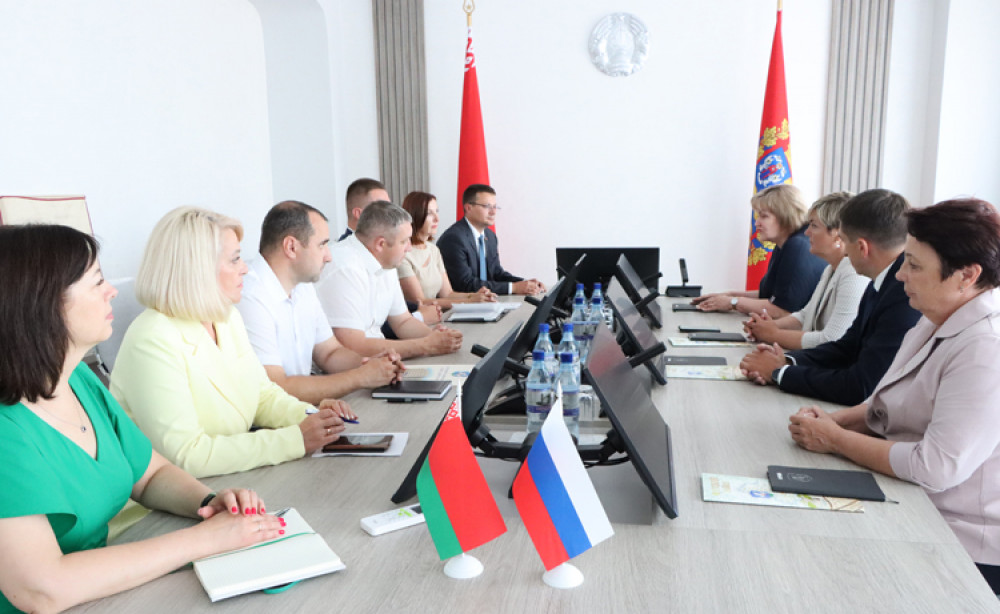 В Слуцком райисполкоме прошла встреча председателя Слуцкого районного исполнительного комитета Владимира Гоги, председателя Слуцкого районного Совета депутатов Александра Курака, заместителей председателя райисполкома Виталия Платуна, Жанны Руцкой, Натальи Чернушевич, управляющей делами райисполкома Ирины Петрович с представителями российского региона.