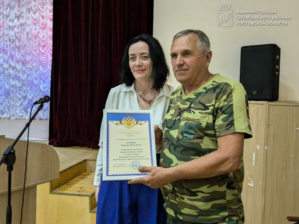 От имени главы Администрации Октябрьского района Людмилы Овчиевой Ирина Герасименко вручила Благодарности Сергею Ефимову и Виктору Бугаеву за многолетний вклад в развитие района. Наталия Бабенко вручила Благодарственные письма жителям Красюковского поселения за активную жизненную позицию, участие в сборе гуманитарной помощи, волонтерской деятельности и решении вопросов поселения.