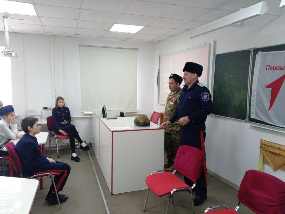 В стенах средней общеобразовательной школы № 19, носящей статус «Казачья», прошла памятная встреча, которая надолго останется в сердцах учеников. В гости к ребятам пришел участник специальной военной операции, казак Алексей Верведа. Организовать этот важный диалог поколений помог атаман хуторского казачьего общества Алексей Строилов.