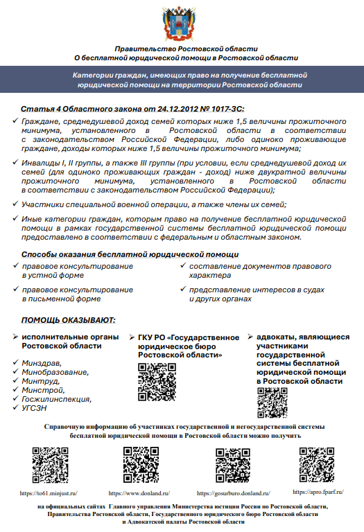 О бесплатной юридической помощи в Ростовской области